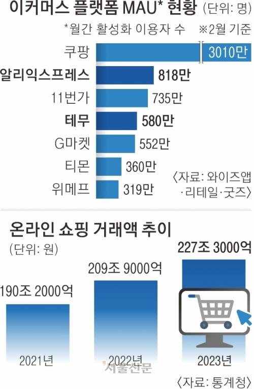 공정위는 급변하는 이커머스 시장을 심층 분석하기 위해 ‘이커머스 시장 실태조사 전담팀’을 구성하고 26일부터 시장 실태조사에 착수한다고 25일 밝혔다. 대상은 국내외 모든 이커머스 플랫폼이지만 쿠팡·네이버 등 국내 플랫폼에 대해선 제재가 다수 이뤄져 온 만큼 중점 조사 대상은 시장 조사가 전무한 알리·테무 등이다.