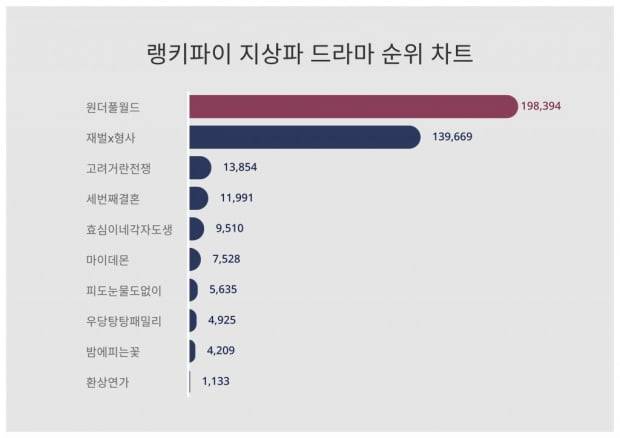 원더풀 월드, 재벌X형사와 경쟁중…지상파 드라마 트렌드지수 투톱
