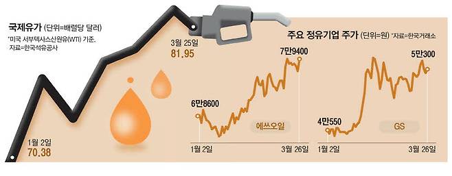 유가 올들어 최고 … 정유주 날아오른다