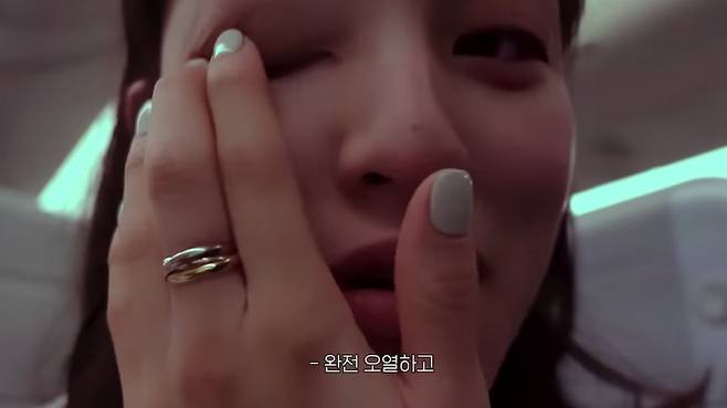 영상에서 지효는 패션 위크를 위해 파리로 가는 모습이 담겼다. 지효는 "슬픈 걸 봐서 엄청 울었다. 엄청나게 오열해서 상당히 부은 상태인데 어떻냐"고 카메라를 응시한 채 물었다. 그러면서 "지금 애교살이 소시지가 됐다. 내일 부으면 안 되는데"라며 걱정했다.