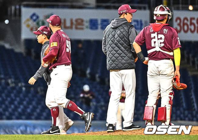 키움 히어로즈 선발투수 헤이수스가 4회말 1사 1,3루 NC 다이노스 손아섭에게 1타점 적시터를 맞고 교체되고 있다. 2024.03.26 / foto0307@osen.co.kr