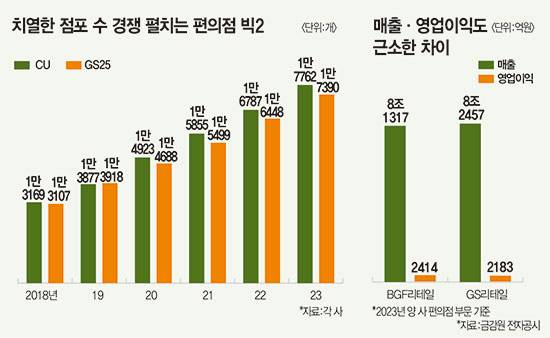 점포 수와 실적 모두 언제라도 1·2위가 바뀔 수 있을 정도로 미미한 차이다. 올해 성과에 따라 누구도 부인할 수 없는 ‘편의점 1위’가 나올 수도 있다. 양 사가 치열한 경쟁을 펼칠 수밖에 없는 이유다.