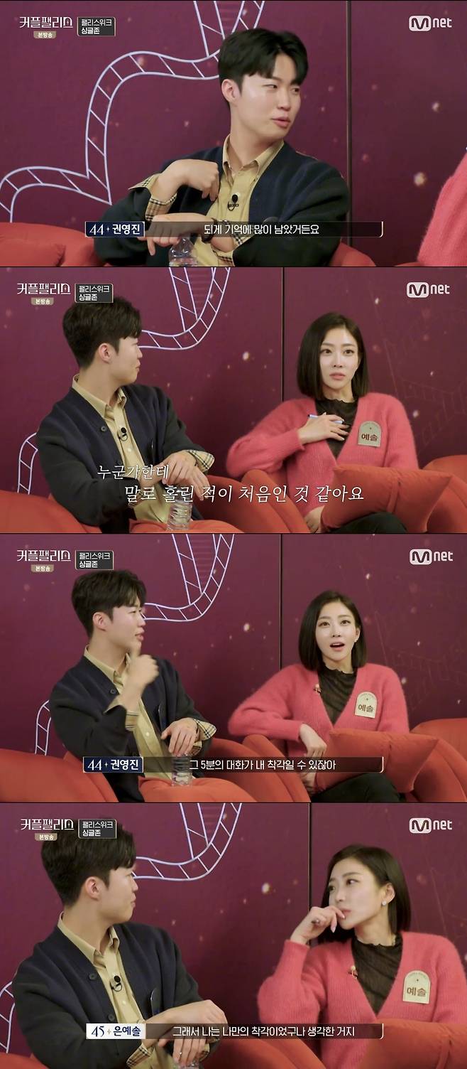 그러자 은예솔은 "나는 그 5분의 대화 때문에 싱글존에 남았다. 그래서 나만의 착각이었구나 생각했다"고 털어놨다.