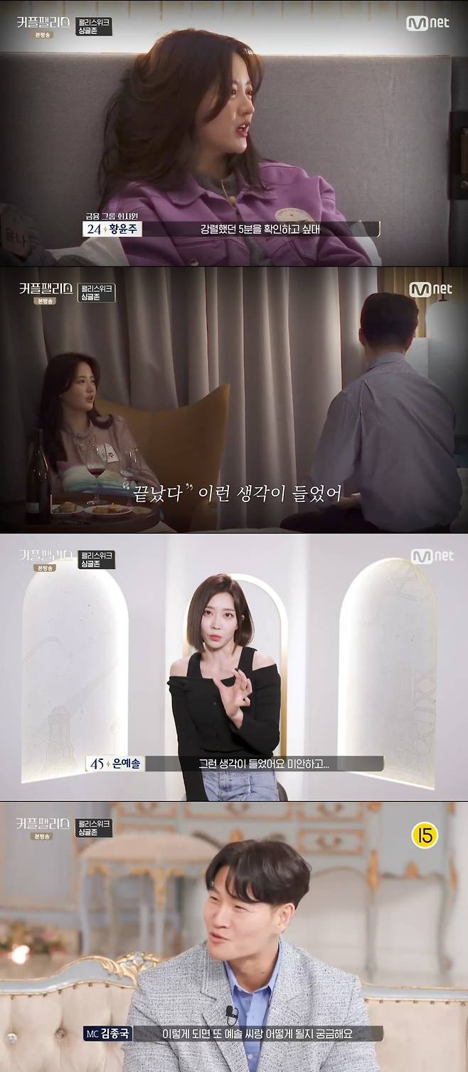 은예솔과 '5분 대화' 여파…권영진 '싱글존'→황윤주 '퇴소' (커플팰리스)[종합]