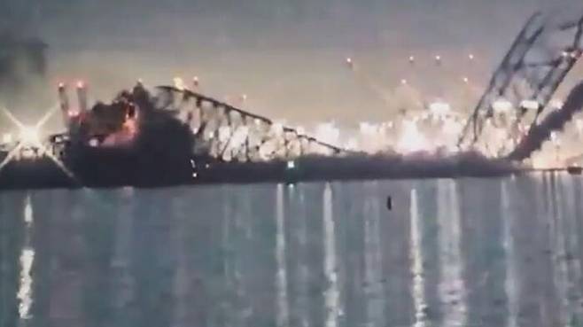 외신 등에 따르면 미국 동부시간으로 이날 새벽 1시 27분쯤 볼티모어 항만을 가로지르는 다리인 '프랜시스 스콧 키 브리지'의 교각에 대형 선박 한 대가 충돌했다는 보고가 해안경비대에 들어왔습니다.
