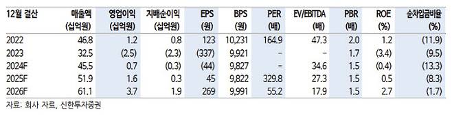 최규헌 신한투자증권 연구원은 “2023년 전사 기준 매출액은 전년대비 30% 감소한 325억원, 영업손실은 25억원으로 적자전환했다”며 “2023년 실적 부진은 고금리 환경이 지속되며 국내 건설 경기가 악화되며 건물용 연료전지 납품이 지연된 영향이 컸다”고 밝혔다.