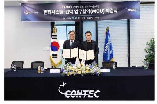대한민국 우주산업을 선도하는 1세대 스타트업 ㈜컨텍(대표이사 이성희)은 3월 26일 한화시스템㈜(대표이사 어성철)와 상호 협력 및 전략적 협업체제 구축을 위한 업무협약(MOU)을 체결했다.