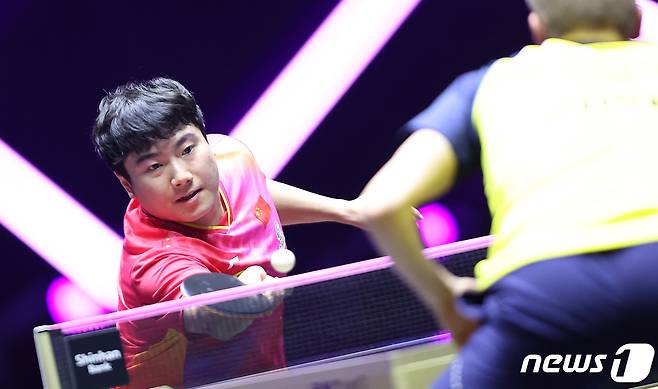 (인천=뉴스1) 김성진 기자 = 27일 인천 영종도 인스파이어 아레나에서 열린 월드테이블테니스(WTT) 챔피언스 인천 2024 남자 단식 32강 중국 량진쿤과 스웨덴 안톤 칼버그의 경기, 중국 량진쿤이 리시브를 하고 있다. 2024.3.27/뉴스1
