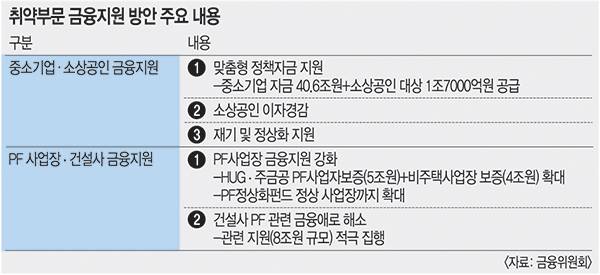 정부가 부동산 시장을 안정시키기 위해 부동산 프로젝트파이낸싱(PF) 사업장에 9조원을 추가로 투입한다. 중소기업·소상공인에게는 다음 달부터 43조3000억원 규모 정책자금을 공급한다.