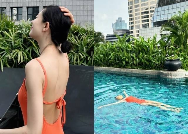 백진희는 27일 자신의 SNS에 여러 장의 사진을 업로드했다. 공개된 사진 속에는 수영장에서 여유를 즐기는 백진희의 모습이 담겼다. 오렌지색 수영복을 입은 백진희는 등이 훤히 드러나는 모습으로 반전 섹시미를 뽐냈다.