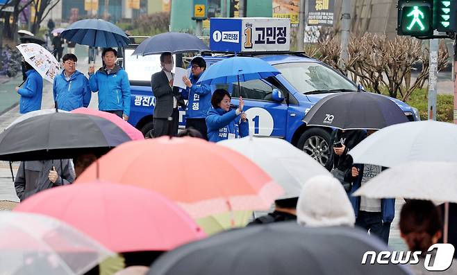 고민정 '우중 선거운동'