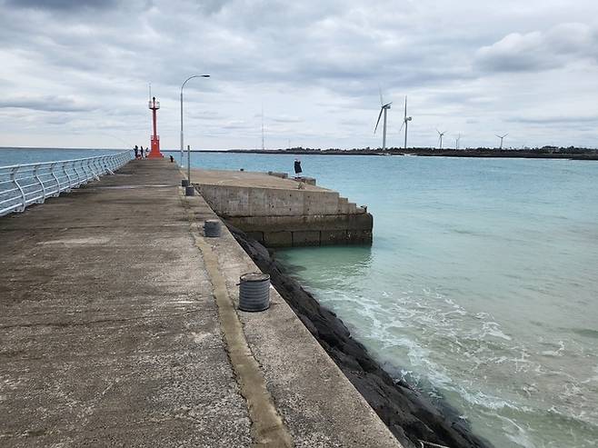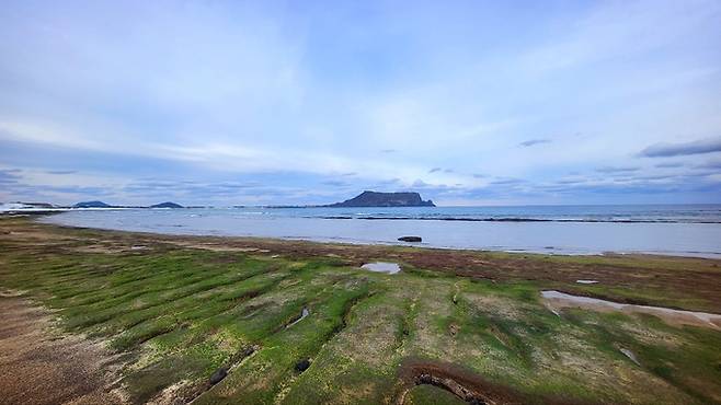 삼달리 독수리 5형제가 자주 가는 럭키편의점과 삼달리 정류장이 있던 곳인 서귀포시 성산읍 오조리에 위치한 오조포구 바다.