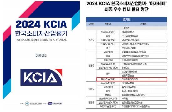 마루게임아카데미, '2024 KCIA 한국소비자산업평가' 우수교육기관 선정