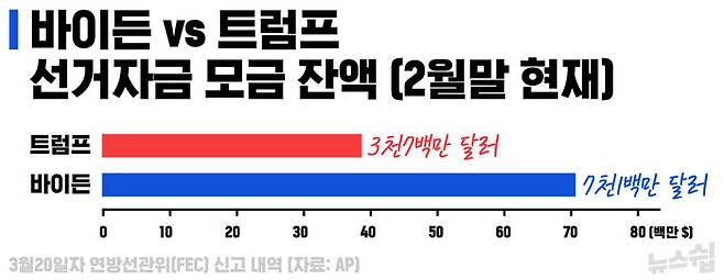 바이든 캠프가 2배 이상 많은 현금 보유