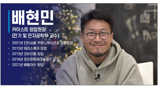 카이스트는 과학기술을 바탕으로 한 창업을 지원하기 위해 지난 2014년 KAIST 기업가정신진흥원을, 이듬해 6월 KAIST 창업원을 출범했습니다. 다음 달 열 돌을 맞는 KAIST 창업원은 교수와 학생을 대상으로 시제품 제작과 투자 자문 등 다양한 창업지원 프로그램을 운영하며, 그간 카이스트 출신 스타트업들이 꾸준히 성과를 거두는 데 크고 작은 역할을 수행해 왔습니다. 지난해에는 네 번째 창업원장으로 전기 및 전자공학부의 배현민 교수가 임명됐습니다. 그는 미국과 국내에서 5번의 창업을 잇따라 성공시킨 자타공인 '창업 고수'입니다. 기술의 대체 속도, 산업 트렌드의 변화가 점점 짧아지는 이 시대, 기술과 창업의 생존 전략을 찾기 위해 배현민 원장을 만났습니다.