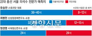 경향신문이 취재한 3명의 전문가 중 2명은 서울 지역에서 민주당이 우세할 거라고 내다봤다. 나머지 1명은 대등한 결과를 낼 거라고 봤다. 유승찬 스토리닷 대표는 민주당이 36~40석, 국민의힘 8~12석을 차지할 거라고 전망했다. 서울은 지난 총선에는 전체 49석이었지만 22대 총선에선 획정을 통해 48석으로 줄었다. 유 대표의 전망치 중 민주당이 최대치를 확보한 경우에는 민주당 40석 대 국민의힘 8석이다. 지난 총선과 비슷한 수준의 전망이다. 유 대표는 이날 통화에서 “여론조사 동향으로 볼 때 강남 3구(강남·서초·송파) 7개 지역구(송파병 제외)와 동작을 지역 정도만 국민의힘에 넘어갈 것으로 보인다”며 “용산도 현재는 민주당에 유리한 상태”라고 말했다. 그는 다만 “‘양문석(민주당 경기 안산갑 후보) 케이스’는 부동산 문제라 20·30 세대에 중요한 변수가 될 것 같다”며 “조국혁신당의 ‘박은정(비례대표 후보 1번) 리스크’도 야당 쪽에 악재로 등장했다. (남은 기간) 조정이 될 수 있다”고 말했다.