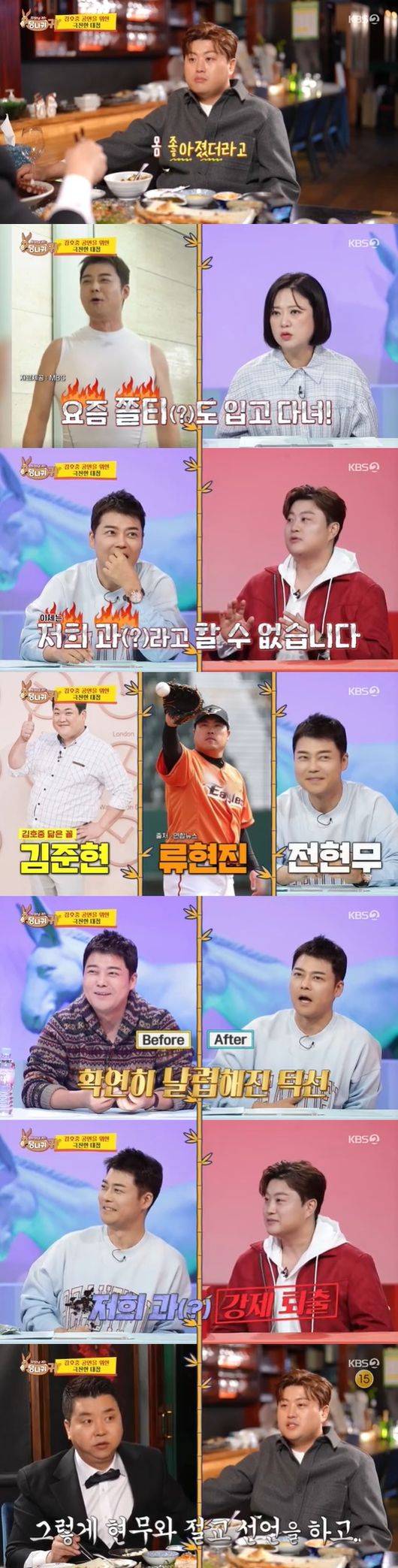 정호영 셰프는 "전현무가 고기 먹어서 살을 빼더라"고 말했고, 김호중은 "몸이 좋아졌다. 요즘 쫄티도 입고 다닌다"고 동의했다.