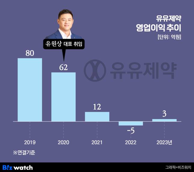 유 대표의 연봉이 도마 위에 오른 이유는 유유제약이 실적악화로 대규모 구조조정을 단행하는 등 비용감축에 나섰던 상황과 무관치않다. 유유제약은 유 대표가 대표로 취임한 2020년 이후 공격적인 신약개발 투자로 영업이익이 내리막길을 걷다 지난 2022년 영업적자를 거둔 바 있다.