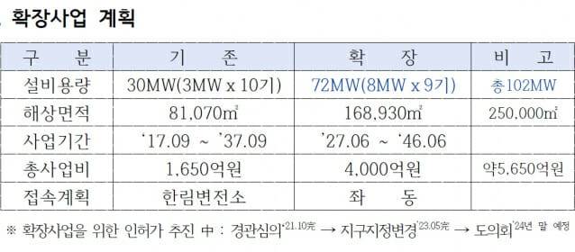 탐라해상풍력발전은 2단계 확장 사업도 착착 추진되고 있다. 1MW급 풍력발전기 10기로 구성된 1단계와는 달리 8MW급 9기로 구성한 72MW급이다. 총 사업비는 4천억원을 예상하고 있다. 탐라해상발전은 2027년 6월 준공을 목표로 잡고 계획을 추진 중이다.