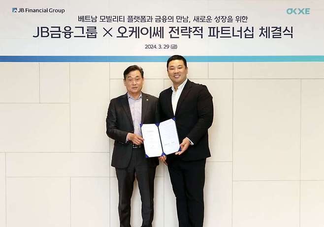 JB금융그룹은 오늘 베트남 중고 오토바이 거래 플랫폼 'OKXE(오케이쎄)'와의 파트너십을 위한 전략적 투자계약을 체결했다고 밝혔습니다.