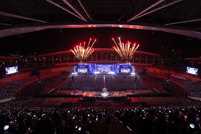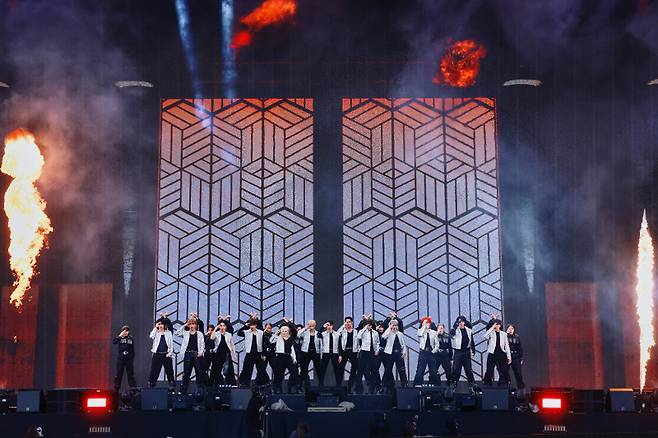 그야말로 장관이다. 그룹 세븐틴이 공연장 구조를 잘 파악한 퍼포먼스와 드론 쇼, 불꽃놀이와 같이 다채로운 연출들로 캐럿들(팬덤명)에게 종합 선물세트 같은 시간을 제공했다.