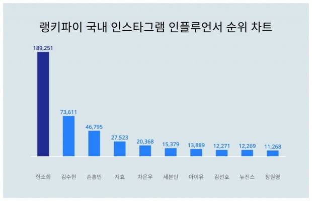 잉한소희가 국내 인스타그램 인플루언서 트렌드 지수 1위를 차지했다.