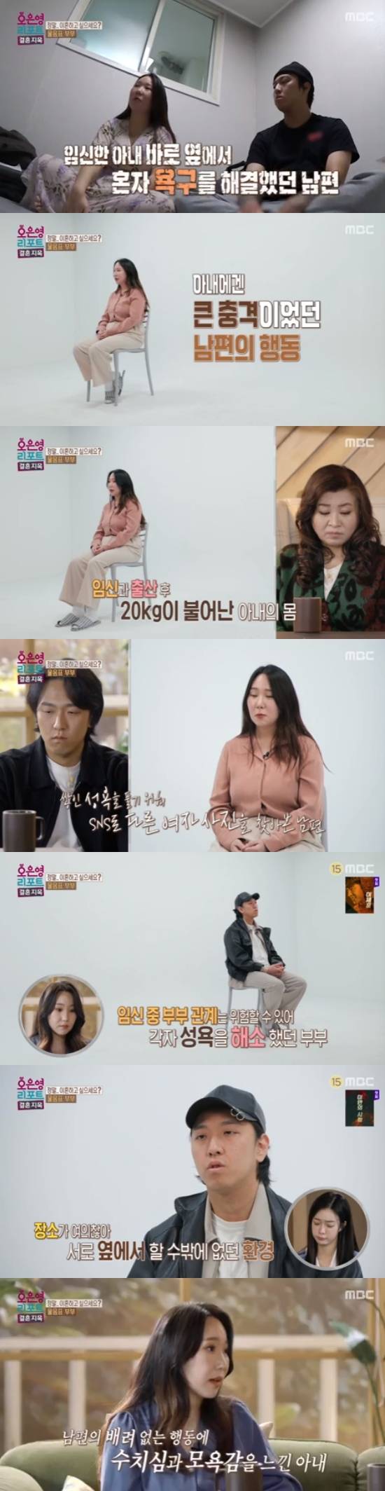 아내는 제작진과의 인터뷰에서 "저한테는 충격이었다. 항상 뭘 보면서 욕구를 풀었고, 최근까지도 뭘 보다가 갑자기 부부관계가 하고 싶어지면 저한테 관계를 갖자고 했다"고 전했다.