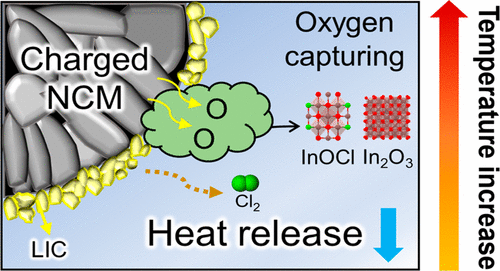특히 할라이드 고체 전해질 중 가장 대표적으로 사용되는 LIC(Li3InCl6)와 충전된 NCM622 양극을 혼합한 복합체를 만들어 열 안정성에 대한 평가를 진행했다.