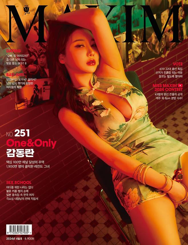 3년 만에 다시 커버를 장식한 감동란은 육감적인 몸매와 거침없는 입담으로 많은 남성 팬을 거느린 BJ 겸 유튜버다. 감동란은 2021년 맥심 3월호 ‘갑을관계’ 편에서 아찔한 오피스룩과 메이드복 차림으로 표지에 등장하며, 맥심 유튜브 영상이 누적 1,900만 조회수를 돌파했다.