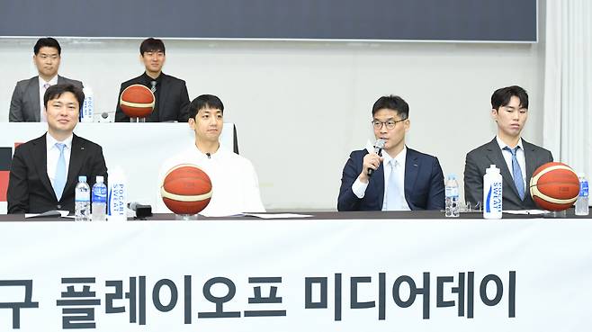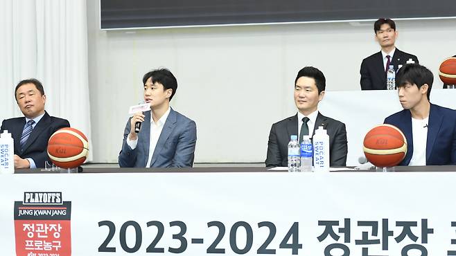 플레이오프를 앞두고 2일 오전 11시 서울 송파구 올림픽파크텔 올림피아홀에서 2023~2024시즌 정관장 프로농구 플레이오프 미디어데이가 열렸다. 6개팀 사령탑과 대표선수들이 참가해 출사표와 각오를 밝혔다. 6개팀 감독들의 목표는 하나같이 '우승'이었다. 선수들은 재치넘치는 '6자 출사표'를 선보였다. 예사롭지 않은 입담이 오갔다.