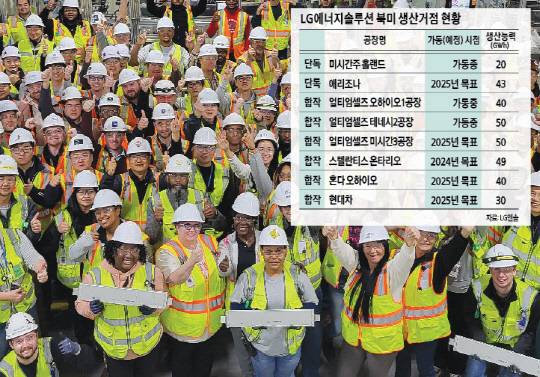내년 가동을 목표로는 얼티엄셀즈 미시간주 제3공장을 비롯해 현대차그룹, 혼다와의 합작공장이 현재 건설 중이다. 또 애리조나주에서는 연간 43GWh 규모의 단독 배터리 생산공장을 준비 중이다.