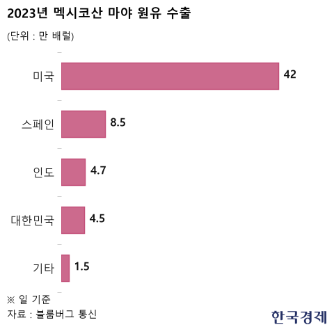 미국 정유업체들은 멕시코산 마야원유 수출 감소로 가장 큰 타격을 입을 것이라고 블룸버그 통신은 보도했다. 발레로 에너지, 셰브런, 마라톤 페트롤리엄 등은 하루에 약 42만 배럴의 헤비 사워 원유를 수입한다. 2023년 마야원유 수출량은 하루 61만2000배럴에 달했다.