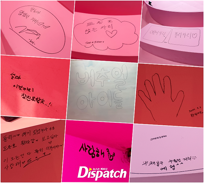 곳곳에 자신들의 흔적을 남겨놓고 떠났다. 직접 앉은 자리를 그림으로 본뜨거나, 숨바꼭질하듯 고마움과 사랑의 메시지를 적어뒀다.