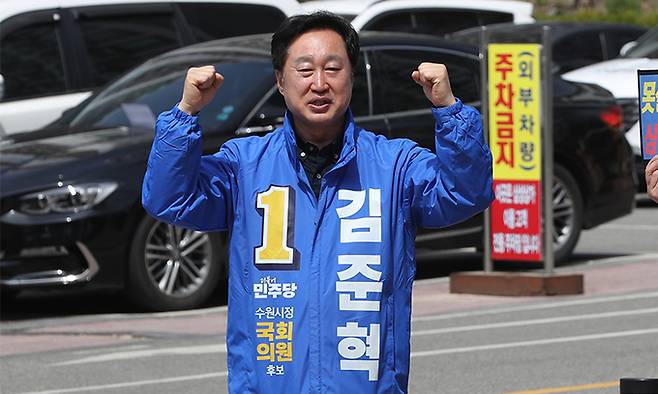 | 논란 휩싸인 후보들 더불어민주당 일부 후보들의 부동산과 막말 리스크가 4·10 총선 변수로 떠오르고 있다. ‘이화여대생 성상납’ 등 과거 발언이 논란이 되고 있는 김준혁(경기 수원정) 후보가 2일 영통구 아파트단지에서 시민들에게 인사하고 있다. 수원=뉴스1 |