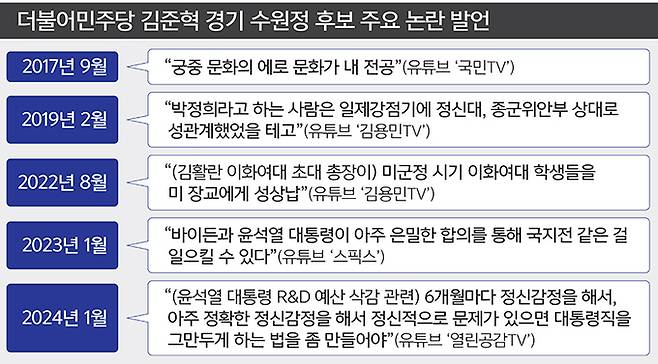 앞서 민주당 김민석 선거대책위원회 종합상황실장은 언론 공지문을 통해 “선대위 상황실은 김 후보의 과거 유튜브 방송 발언이 부적절하다고 판단했다”며 “해당 학교와 구성원들에게 사과할 것을 김 후보에게 권고했다”고 밝혔다.