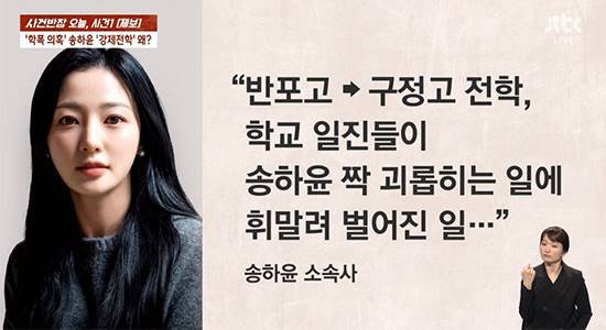 2일 방송된 JTBC '사건반장'에서는 송하윤의 학폭 의혹에 대한 제보자의 추가 입장이 공개됐다.
