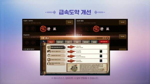 4월 업데이트로 급속 도약을 대폭 개선할 계획이다. 신규 계정은 조건 없이 급속 도약을 1회 사용할 수 있다. 내실 시스템도 백두산 지역까지의 유물 사냥 도감, 장비 효과 도감, 임무, 평판을 장비 수집 과정 없이 즉시 완료 처리된다. 여기에는 일부 환수 도감도 포함된다.