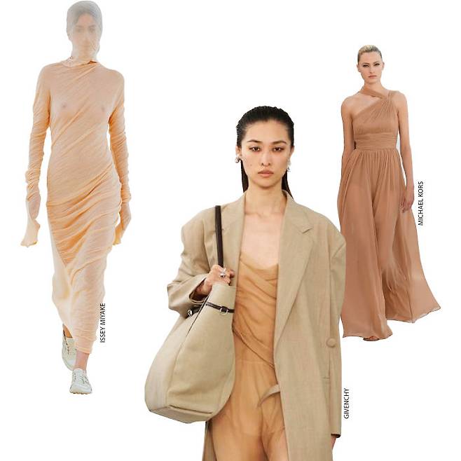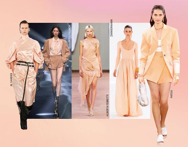 2024년 올해의 컬러로 선정된 피치 퍼즈를 선두로 봄을 닮은 웜톤 컬러가 런웨이를 장악했다. 매년 S/S 컬렉션에서 확인할 수 있는 뉴트럴과 파스텔컬러를 기본으로 과실을 닮은 피치와 코럴, 연한 베이지 등 피부 톤에 가까운 컬러를 활용한 룩들이 눈에 띄게 많아진 것. 아름다운 살굿빛 드레스를 선보인 짐버만과 질샌더부터 은은한 베이지 톤 룩을 런웨이에 올린 막스마라와 지방시, 복숭아 과즙처럼 상큼한 코럴 컬러 투피스를 제안한 파투, 차분한 베이지 핑크 컬러를 구현한 알베르타페레티와 이세이미야케까지. 봄을 닮은 포근한 컬러의 향연이 이어졌다.