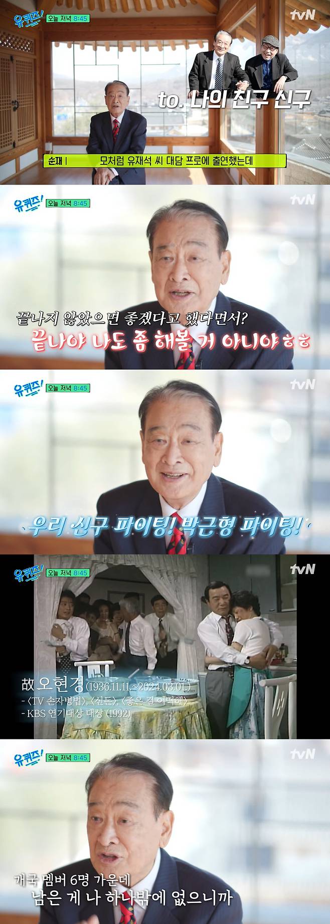 3일 tvN '유 퀴즈 온 더 블럭'은 '91세 꽃할배 이순재! 배우 신구, 박근형과의 우정과 故오현경을 보내며'라는 제목의 선공개 영상을 공개했다.