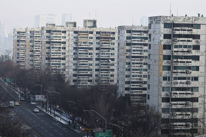 | ▲ 안전진단 없이 재건축 착수…사업기간 최대 5∼6년 단축한다 아파트를 지은 지 30년이 넘었다면 안전진단 없이 재건축을 시작할 수 있도록 정부가 절차를 간소화하기로 했다. 정부는 지난 1월 10일 윤석열 대통령 주재로 '국민과 함께하는 민생토론회'를 열고, 이 같은 내용의 주택공급 확대 및 건설경기 보완방안을 발표했다. 사진은 이날 여의도 재건축 아파트 일대 모습. |