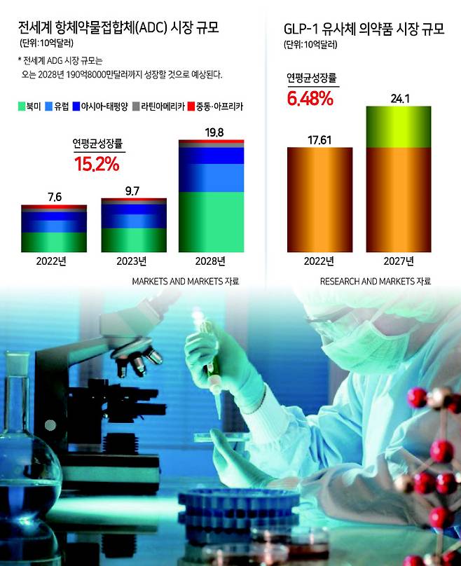 마켓앤마켓은 2023년 97억8000만 달러의 ADC 글로벌 시장 규모가 오는 2028년에는 198억 달러까지 성장할 것으로 추정한다.