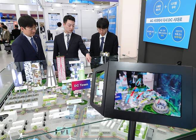 코리아 스마트그리드 엑스포 2024가 3일 서울 삼성동 코엑스에서 개막했다. ‘전력 신산업, 미래 에너지를 그리다’ 주제로 5일까지 열리는 이번 행사는 한국전기산업대전, 한국발전산업전과 함께 개막했다. 스마트그리드는 전기 및 정보통신기술로 에네지 효율을 극대화 하는 차세대 전력망이다. 관람객들이 한국전력공사 부스에서 DC타운 조형물을 살펴보고 있다.