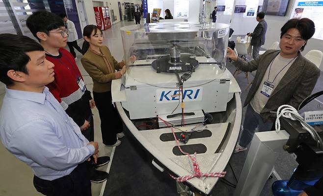 관람객들이 한국전기연구원 부스에서 설명을 듣고 있다.