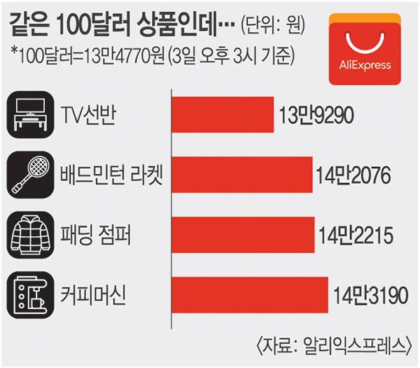 3일 알리익스프레스에서 판매 중인 상품 페이지에 접속해 원화와 달러로 표시된 가격의 환율을 계산하면 상품에 따라 최소 1370원에서 최대 1450원대의 환율이 적용되는 것으로 확인된다.