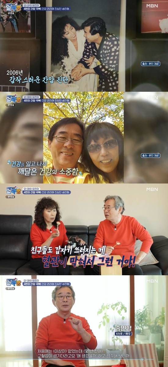 송민형은 지난해 10월 방송된 MBN '속풀이쇼 동치미'에서 "네 번이 재발됐다. 5cm 이상의 간암이 있었다. 병원에서 빨리 절개하자고 했는데 견뎠다"면서 "당시 '주몽' 촬영 중이라 수정을 못해 항암치료만 했다"고 설명했다.