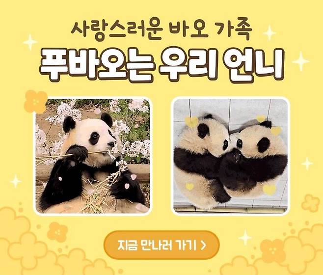 에버랜드는 SNS로 사전 모집한 고객들의 응원 메시지를 유채꽃 모양의 디자인에 담아 푸바오를 위한 꽃길을 마련하고, 대형 LED 스크린에 푸바오 사진과 특별 영상을 내보내기도 했습니다.