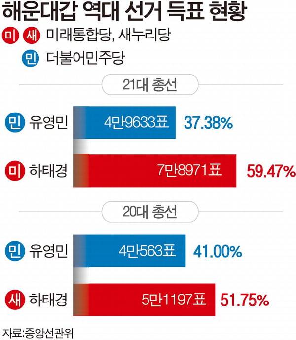 해운대구의 숙원인 도시 개발 및 재정비는 두 후보 모두의 공약이다. 두 후보는 53 사단 부지 활용과 해운대구 좌동 그린시티를 ‘노후계획도시 특별법 선도지구 지정’ 등을 약속하고 있다. 주 후보는 “지역 현안을 빠르게 파악하고 있다. 국회의원이 굵직한 사업을 진행시키기 위해서는 무엇보다 중앙과의 네트워크가 중요하기 때문에 강점을 십분 발휘하겠다”고 다짐했다. 홍 후보는 “해운대구청장 시절 공약 이행률이 90%를 넘는다. 끊임없이 소통하고 잘못됐다는 지적이 들어오면 원점부터 다시 생각하기 때문”이라며 “제가 한 약속은 반드시 지킨다”고 자신했다. 자세한 사항은 중앙여론조사심의위원회 참조.