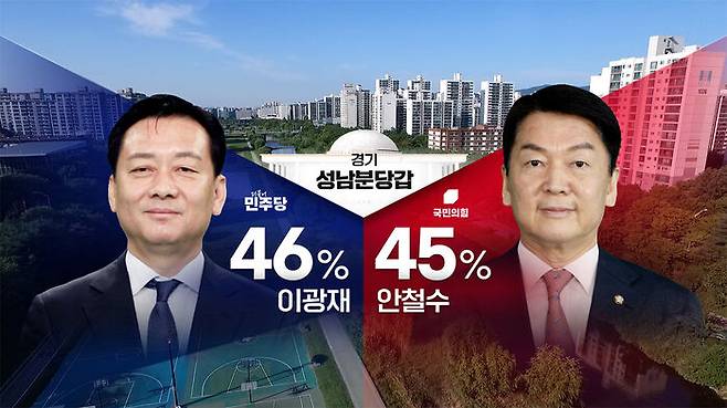 민주당 이광재 후보 46%, 국민의힘 안철수 후보 45%, 오차 범위 안에서 팽팽했습니다.