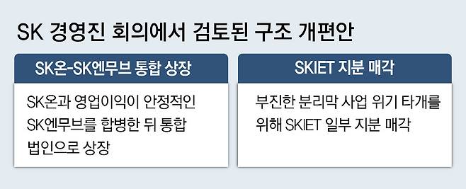 최 회장은 당시 회의에서 SK온과 윤활유 업체 SK엔무브를 합병한 뒤 상장하는 방안과 배터리 분리막 업체인 SKIET의 지분을 일부 매각해 자금을 확보하는 방안 등을 검토했다.
