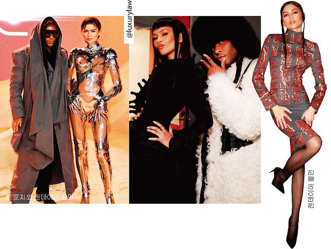 배우 젠데이아 콜먼은 영화 프레스 투어 때마다 작품의 콘셉트에 맞는 의상을 선보이는 것으로 유명하다. 최근에는 영화 '듄: 파트2’ 런던 시사회에서 마치 로봇이 연상되는 갑옷 같은 의상을 입고 모래사장에 모습을 드러내 눈길을 끌었다. 뜨거운 화제를 불러일으킨 이 룩은 뮈글러의 1995년 가을·겨울 컬렉션 아카이브였다. 매번 젠데이아의 개성 넘치는 패션과 애티튜드를 완성해준 건 가족과도 같은 그녀의 스타일리스트 로 로치. 그는 2021년 '더 할리우드 리포터’가 선정한 최고의 스타일리스트에 이름을 올리기도 했다. 젠데이아를 비롯해 셀린 디온, 안야 테일러조이 등 여러 스타의 의상을 책임져온 로 로치는 2023년 3월 은퇴를 선언했다. 이후 젠데이아 외에 다른 셀러브리티는 맡지 않겠다고 밝혔고, 지금까지 젠데이아와 함께 전설적인 룩들을 탄생시키고 있다.